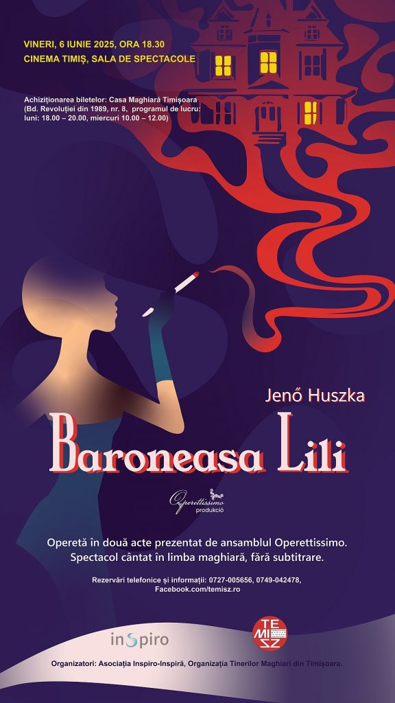 Operetă în două acte prezentat de ansamblul Operettissimo (Cluj Napoca). Spectacol cântat în limba maghiară, fără subtitrare. Spectacolul are o pauză și se încheie în jurul orei 21:00.